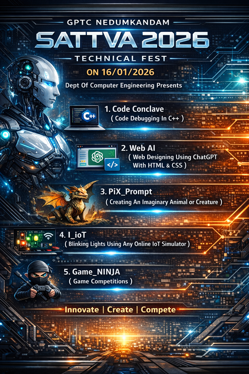 3 years Diploma courses in Computer Engg., Electronics Engg. and Computer Hardware Engg.